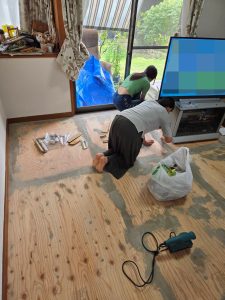 ここは、最終的に私と姉、弟の3人で対応しました。合板とクッションフロアで仕上げましたが、掃除も含めると何日もかかりました。