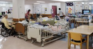 天本病院では、1階の会場までお越しいただくことが叶わなかった患者様へは、各病棟にWEB中継でお届けいたしました。