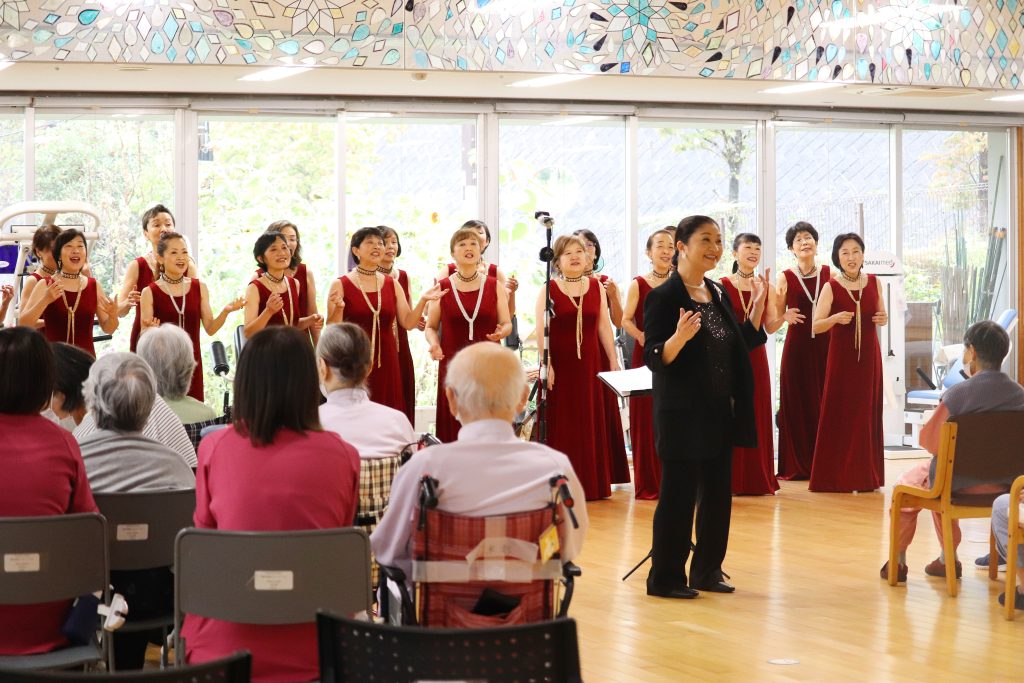 楽曲は、皆様にも馴染みの深い民謡や昭和歌謡を中心に、アンコールでは「オー・シャンゼリゼ」を患者様も一緒に歌うなど、秋らしい楽曲計9曲をご披露いただきました。