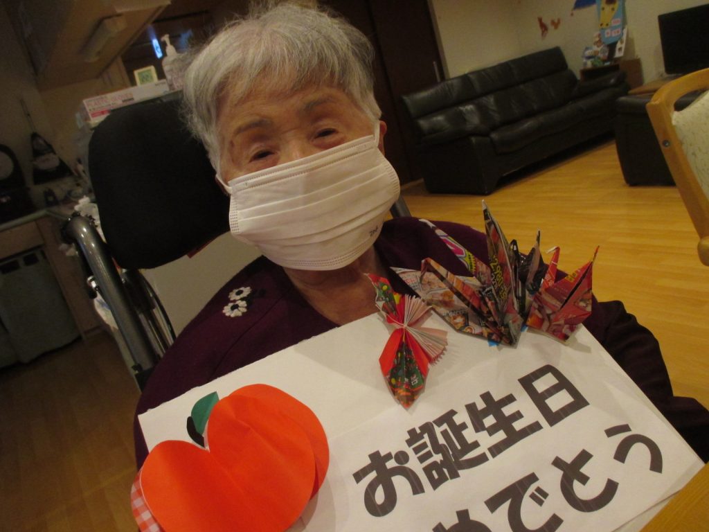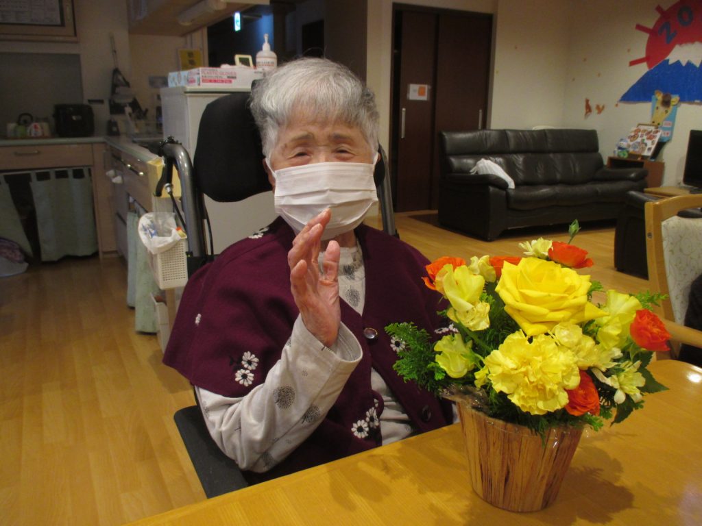○1月お誕生日、100歳を迎えたご利用者様。多摩市長の来訪もあり、皆さんでお祝いをさせて頂きました㊗