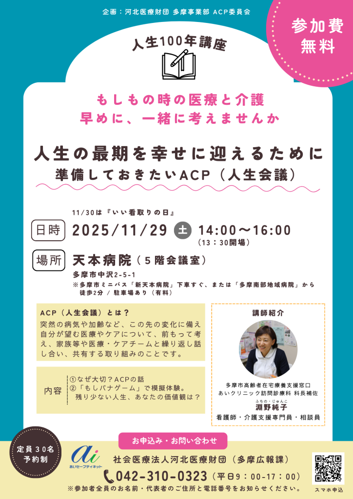 - 11/29(土)人生の最期を幸せに迎えるために準備しておきたいACP(人生会議)