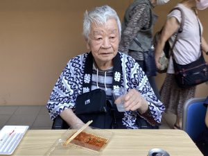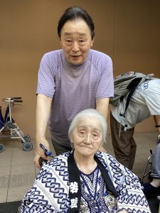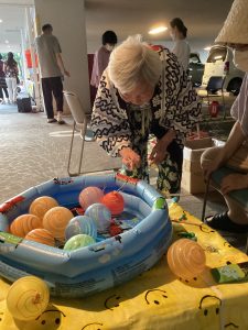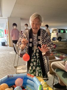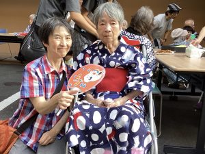 法被を着てお祭りの雰囲気を楽しみ、わいわいと会話しながらの食事は、なかなかない機会なので利用者の皆さまもとても楽しんでおられました。中には、昔着ていた浴衣を着て参加して下さった方も✨✨