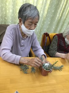 こもれびでは、お庭の植物を使ってクリスマス飾りを作りました。