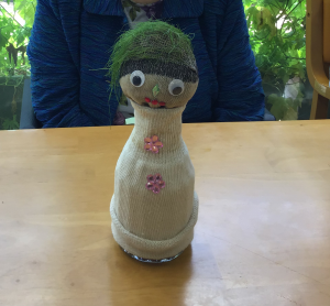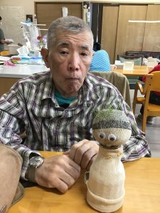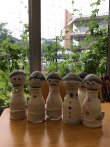 芝の種を使って、芝が伸びて髪の毛となる【芝坊や】という人形を作りました。