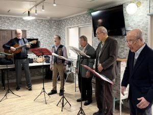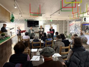 匠カフェの常連さんが所属する合唱団の方が、すばらしい歌声を披露してくださいました。男声ならではの重厚感あふれるハーモニー、そしてみなさまのいぶし銀のようなダンディなお姿に観客はすっかり魅了されました。「またぜひ聴きたい」とのご要望も多数いただきました。