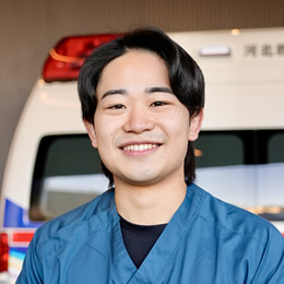 - A:河北の救急車で搬送した患者さんやご家族からいただく「ありがとう」の一言が、救急救命士として良かったと思える瞬間です。またひとつひとつの症例に対して問診や観察、処置を考えながらおこなえることも成長に繋がっていると感じています。
